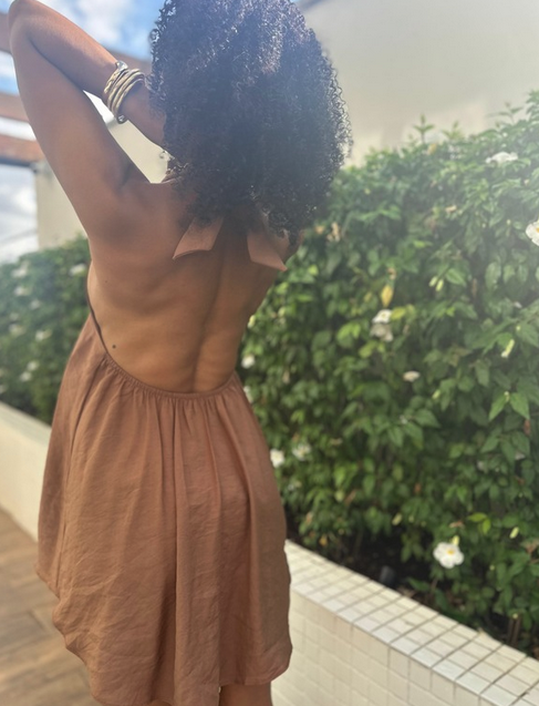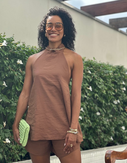 Conj. Shorts e blusa (costas de fora) – cor marrom