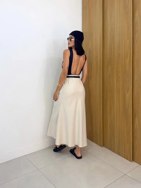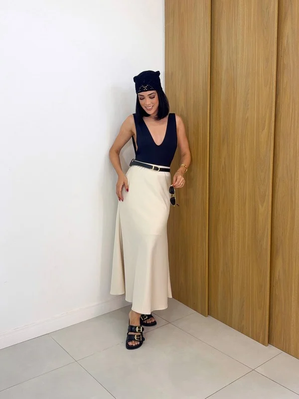 a nossa Saia Midi Satin é o investimento perfeito. Com um brilho acetinado