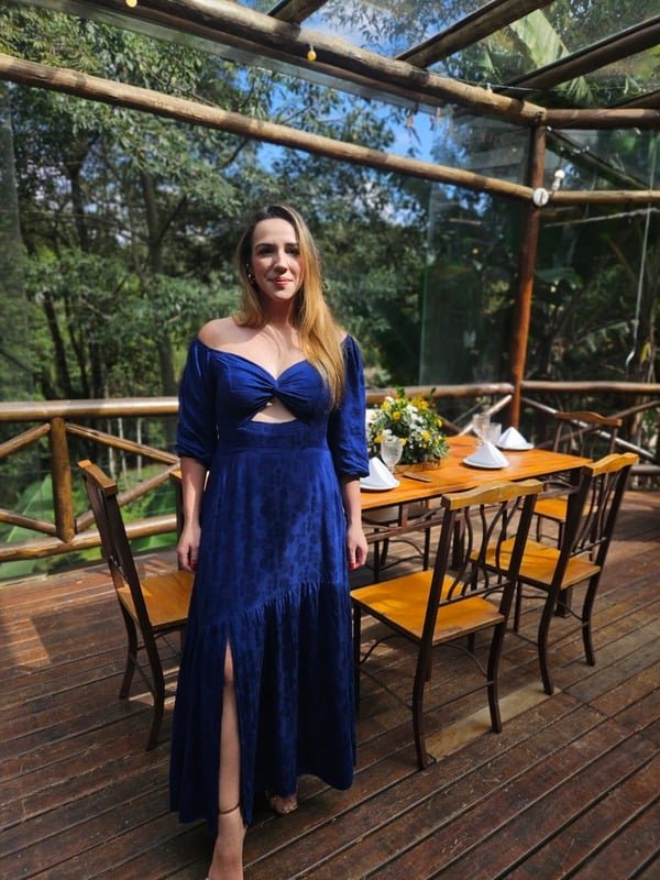 Para os dias de sol e noites especiais, apresentamos o Vestido Longo Azul Marinho com