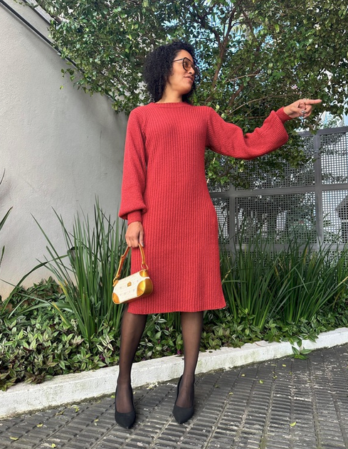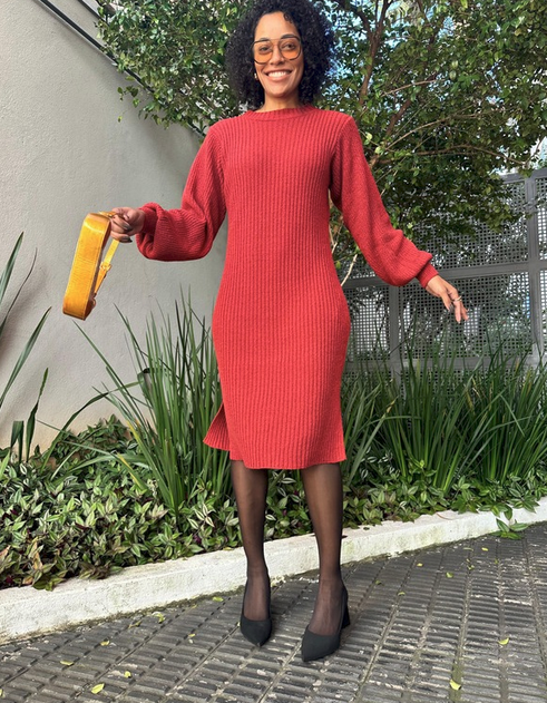 Vestido midi em trico modal, com